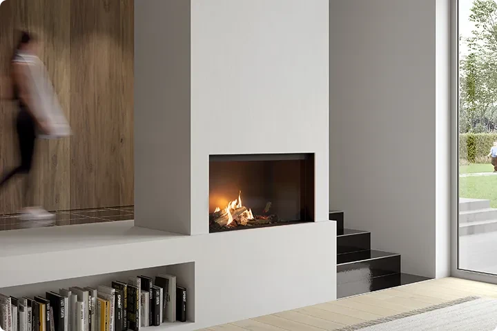Gaspejs til indbygning i væg, så flammen kan synes fra sofaen, spisebord eller hvor pejsen nu engang ønskes monteret. Disse pejse er fremstillet til at indbygge i væggen med et balanceret aftræk, der enten går ud bag på pejsen eller op langs toppen.