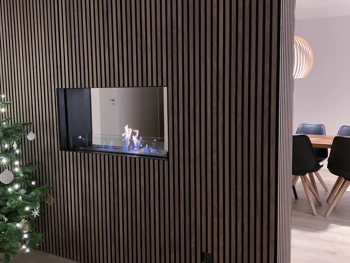 Specielt vores Fritstående Ethanol Brændeovne vil fungere rigtigt godt sammen med træpanelerne fra i-Wood.