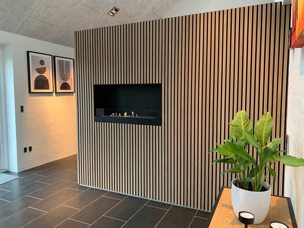 Træpaneler, der hjælper med at forbedre akustikken, er blevet populære, og vi hos Biopejs-shop oplever en stor efterspørgsel på sammensætning af akustikpaneler og biopejse. Resultatet kan også være helt fabelagtigt, når man sammensætter det rustikke look fra træpanelerne og de dansende flammer fra biopejsen.