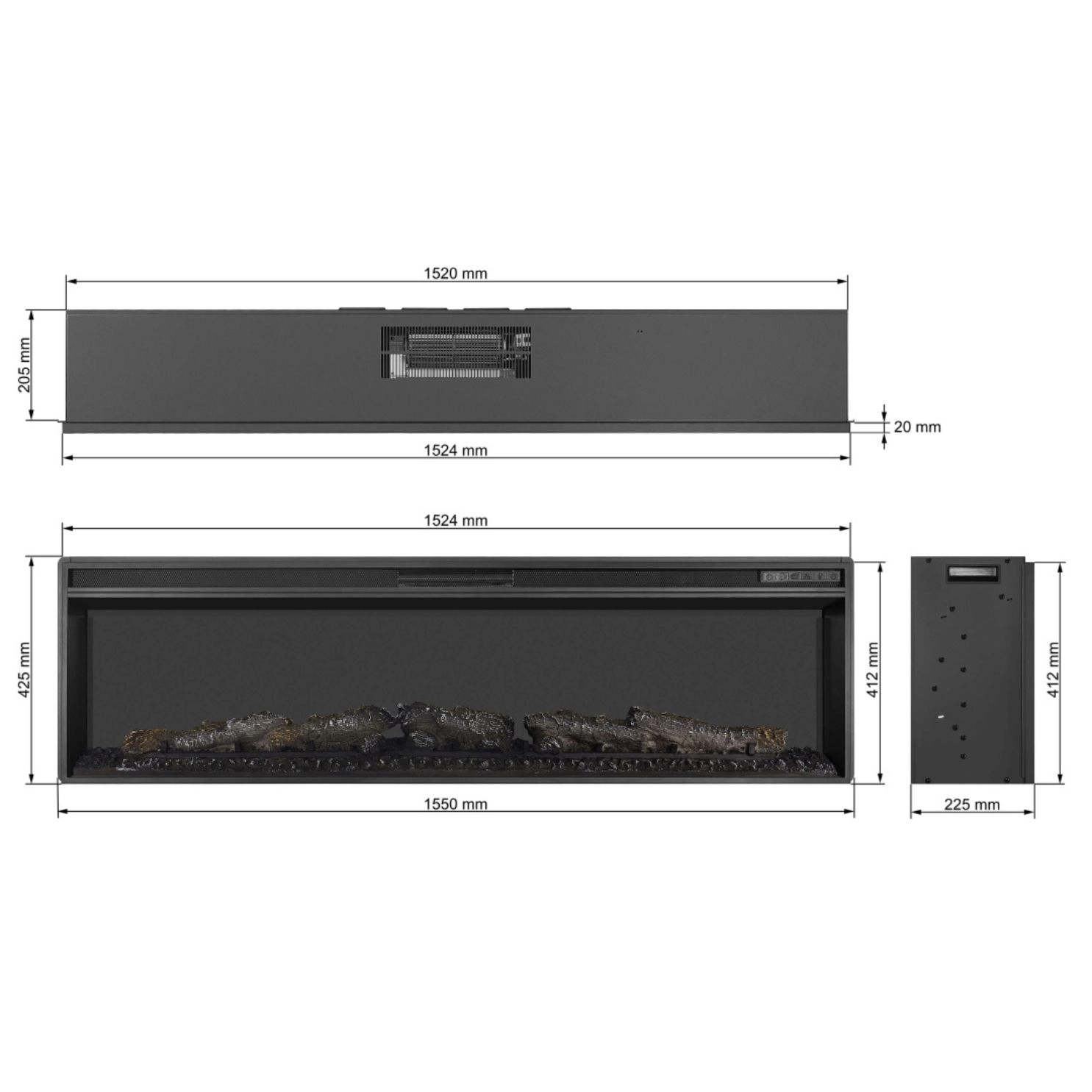 - Realistiske flamme- og lydeffekter, der portrættere en rigtig pejs