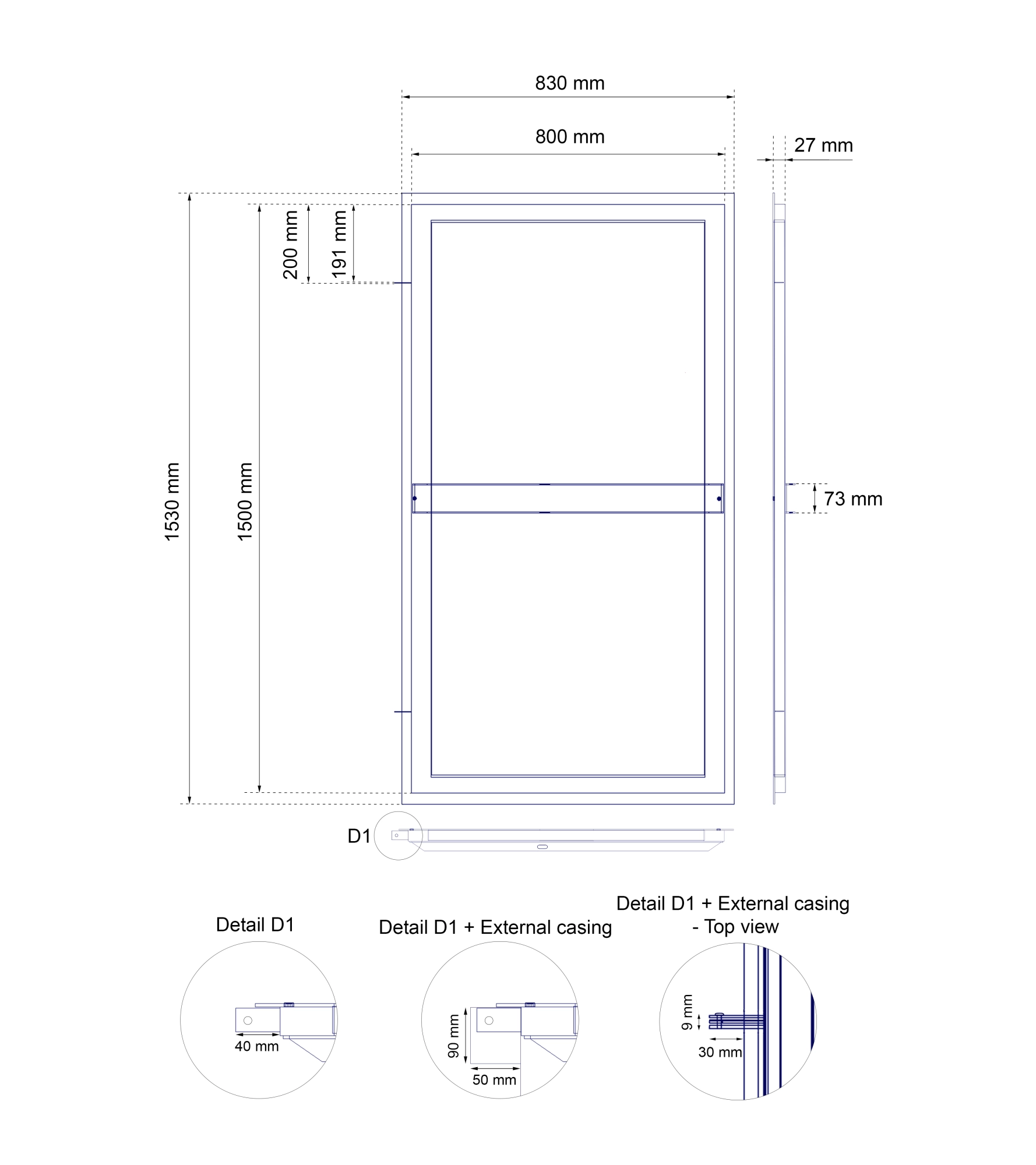 - Standardstørrelse: 800x1500 mm – specialmål tilgængelige